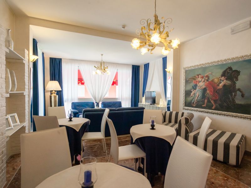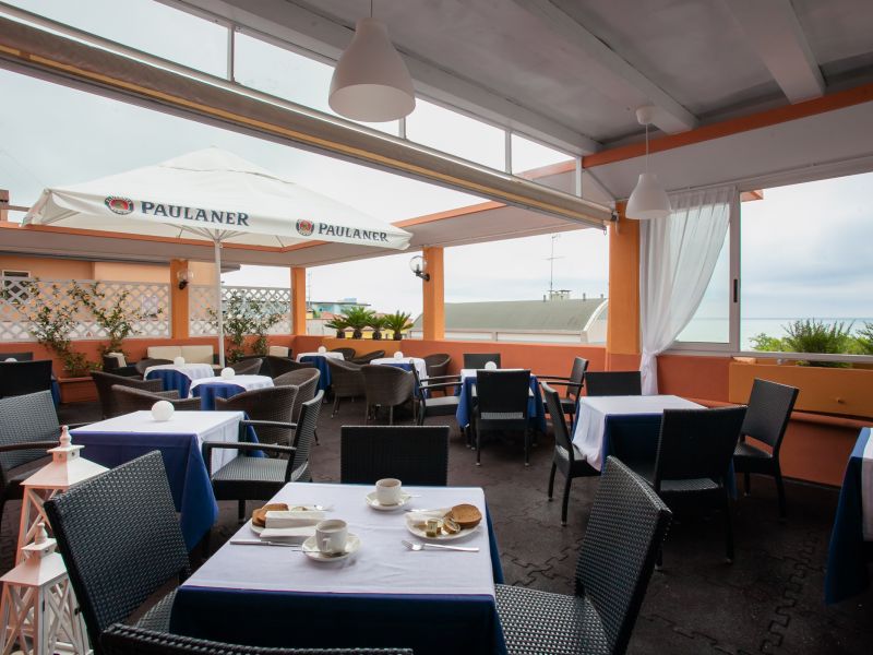 La splendida terrazza al quarto piano ha una vista mozzafiato sul Mare Adriatico e a seconda dell’orario della giornata, si trasforma in area colazioni, in solarium o in un lounge bar per sorseggiare un aperitivo. La musica la mettiamo noi, voi pensate a divertirvi e gustarvi la bellezza del panorama: sarete in buona compagnia.