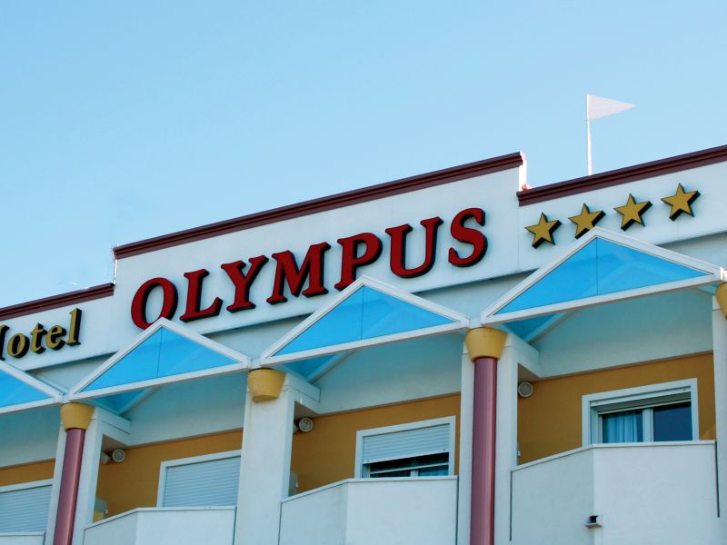 Per una vacanza serena in un'atmosfera sempre allegra l'Hotel Olympus mette a disposizione dei propri clienti camere ampie e spaziose con servizi:terrazzo, aria condizionata, impianto TV SAT, accesso internet, cassetta di sicurezza, mini-frigo.Dotato di piscina per adulti e bambini con giochi d'acqua ed ampio solarium attrezzato con lettini prendisole ed ombrelloni.Dispone, inoltre, di giardino con spazio giochi per bambini, parcheggi esterni e autorimessa coperta, spiaggia privata con servizio navetta.Dotato di palestra, baby corner con animazione, sala meeting con 60 posti a sedere e impianto di video proiezione. L'ospite può scegliere tra i servizi di camera con colazione, mezza pensione e pensione completa, tutti a buffet.